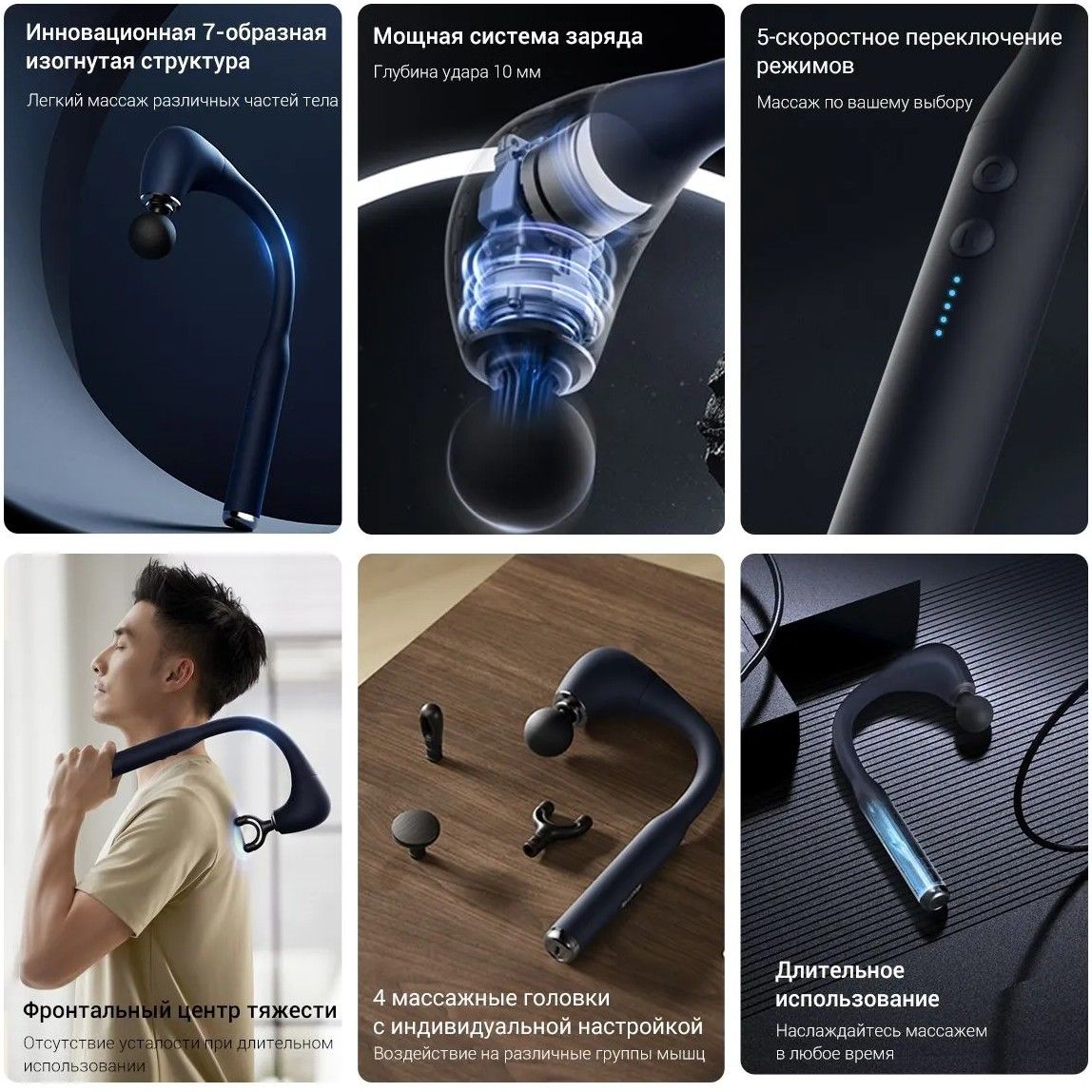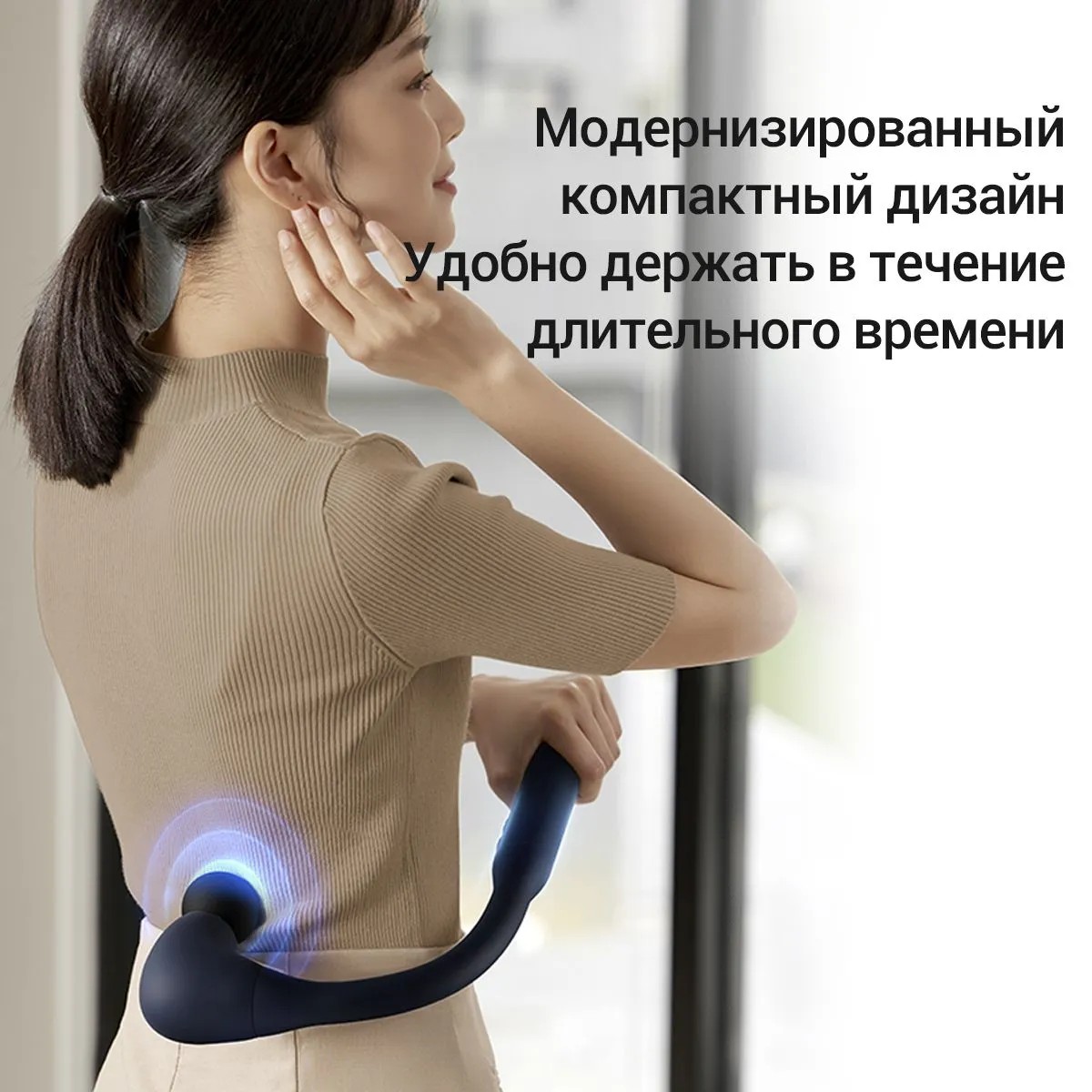 J-образная конструкция позволяет держать прибор на 360° спереди и сзади. Вы можете легко массировать различные зоны: плечи, поясницу и спину.