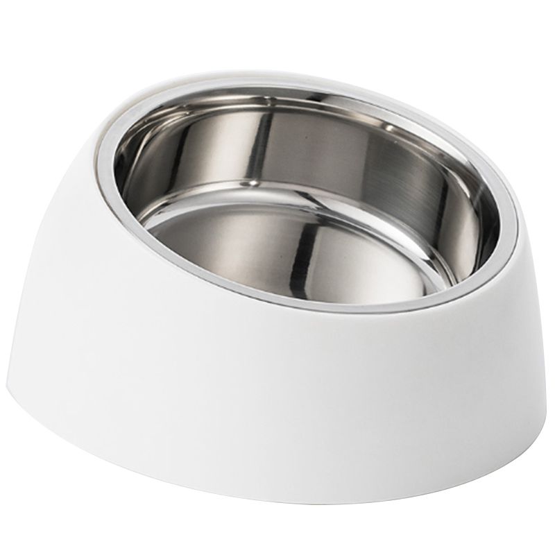 Стильная миска для корма обязательно придётся по душе вашему питомцу! Выполнена из белого пластика и нержавеющей стали, снизу - силиконовые вставки, чтобы не скользила по полу. В комплекте две миски - с круглым и плоским дном. Благодаря специальному наклону миски снимается нагрузка с позвоночника и лап животного.