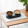 Элегантный серый цвет основания с матовой текстурой вкупе с чистым блестящим корпусом мисок из нержавеющей стали отлично гармонируют и хорошо вписываются в интерьер современной кухни.