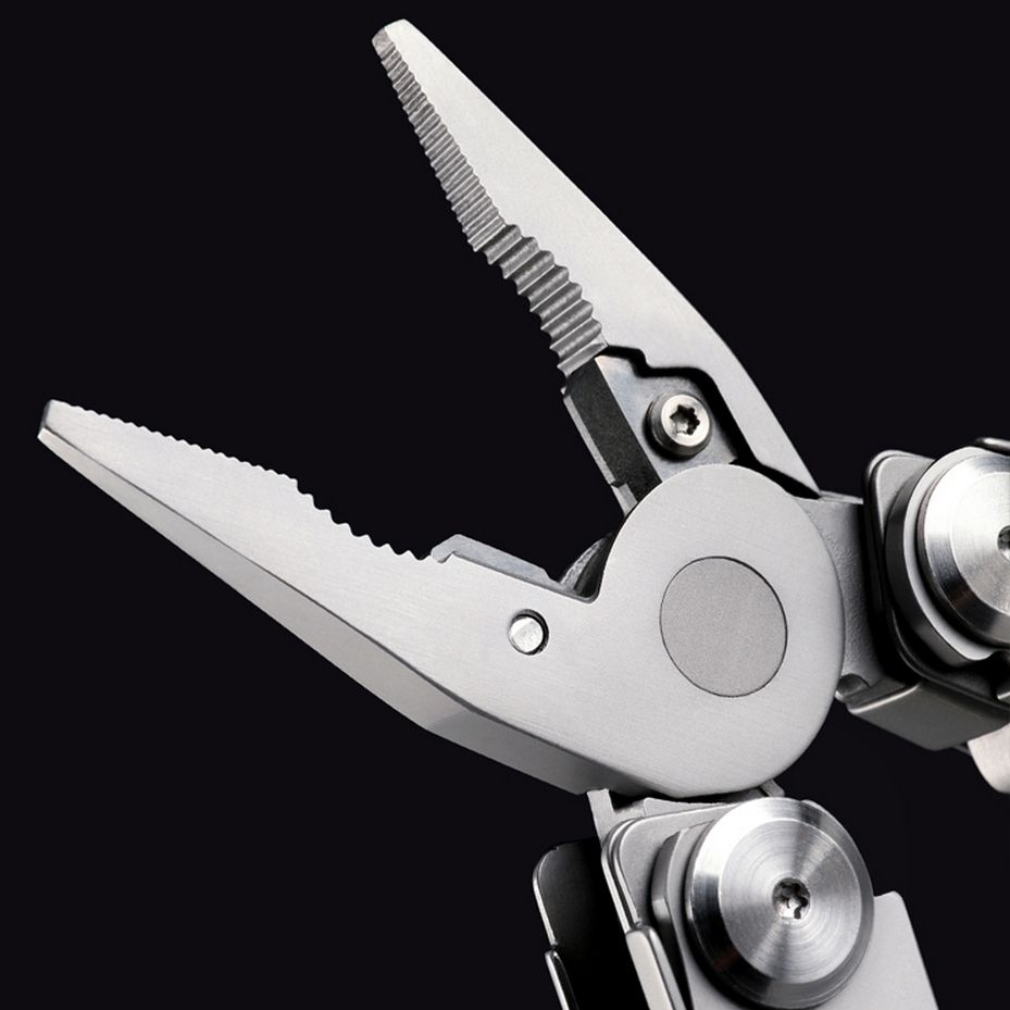 Ножницы из стали 450J2 отлично подходят для нагрузок испытываемых ножницами. Плоскогубцы, основное лезвие, ножницы, пила и открывашка сделаны из прочного сплава HRC50, обладающей великолепной режущей силой, и обладающими антикоррозийными свойствами. Все это позволяет добиться от инструментов максимальной прочности и эффективности.