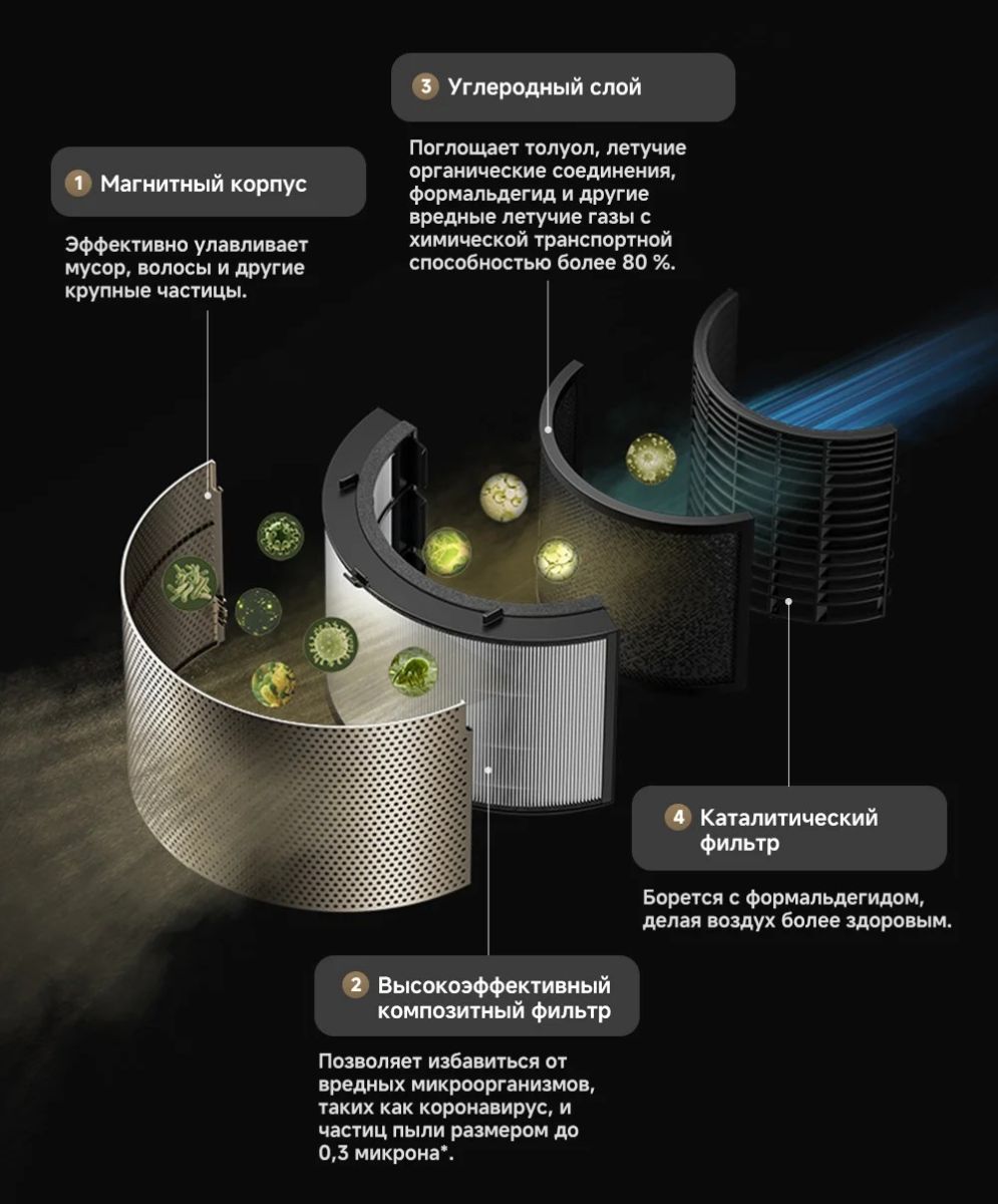 Наслаждайтесь свежим воздухом благодаря сверхбыстрому восходящему потоку. Производительность очистителя воздуха достигает 400 м3/ч, что позволяет сделать воздух чистым во всем жилом пространстве.
