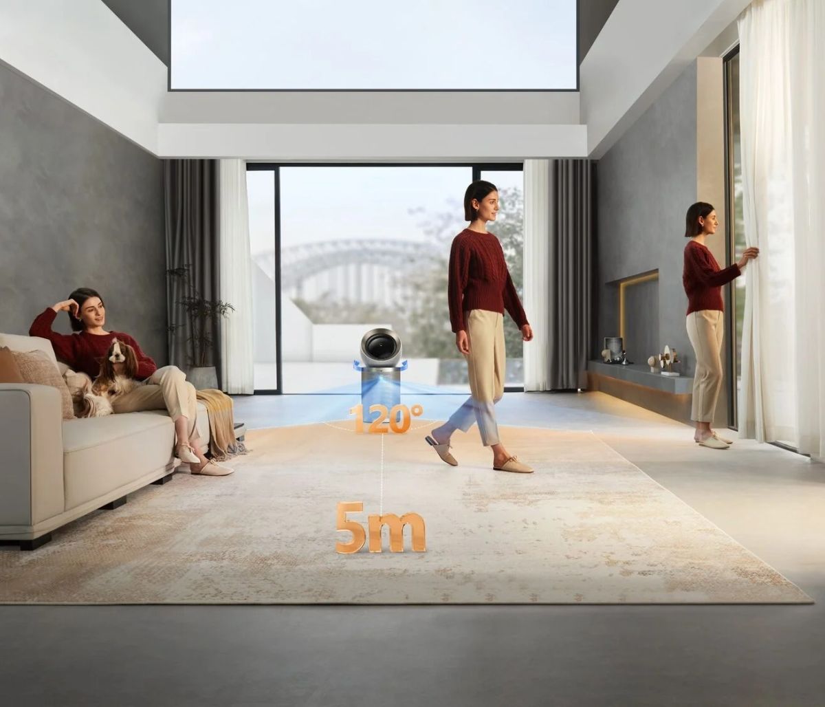При наличии одного человека в помещении воздушный поток будет следовать за ним. В присутствии нескольких людей воздушный поток будет попеременно менять направление, обеспечивая равномерный охват.