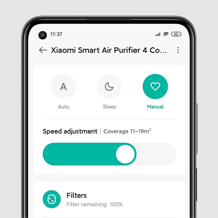 Благодаря настройке датчика твердых частиц, чувствительному мониторингу качества воздуха и автоматической регулировке скорости очистки воздух в помещении будет всегда оставаться чистым.