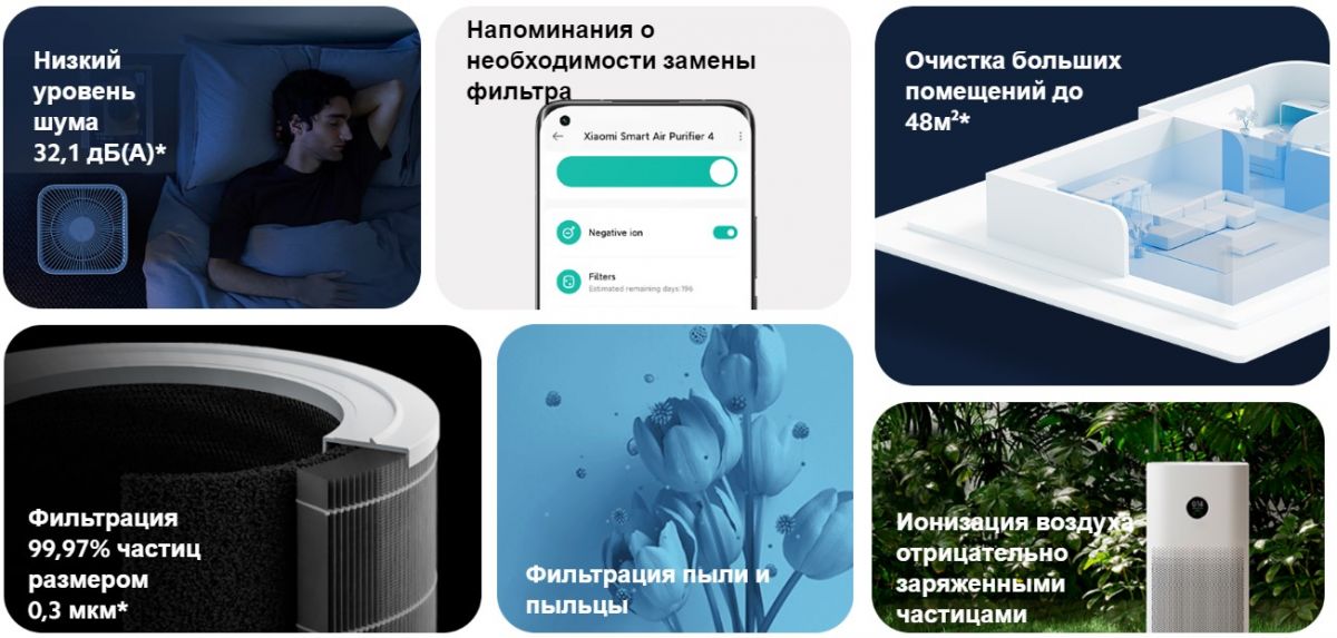 Защита в течение всего дня для тех, кто страдает от ринита и аллергии. Xiaomi Smart Air Purifier 4 защищает здоровье органов дыхания и поддерживает чистоту и безопасность воздуха в вашем доме.