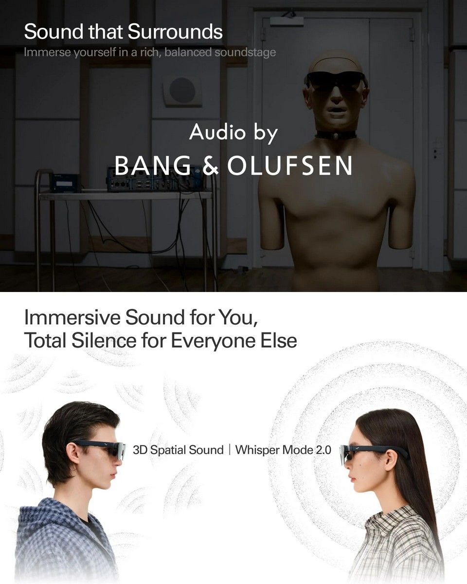Премиальный звук от Bang & Olufsen: Погружающий 360° звук через четыре динамика. Наслаждайтесь объёмным звучанием или режимом приватного шёпота.