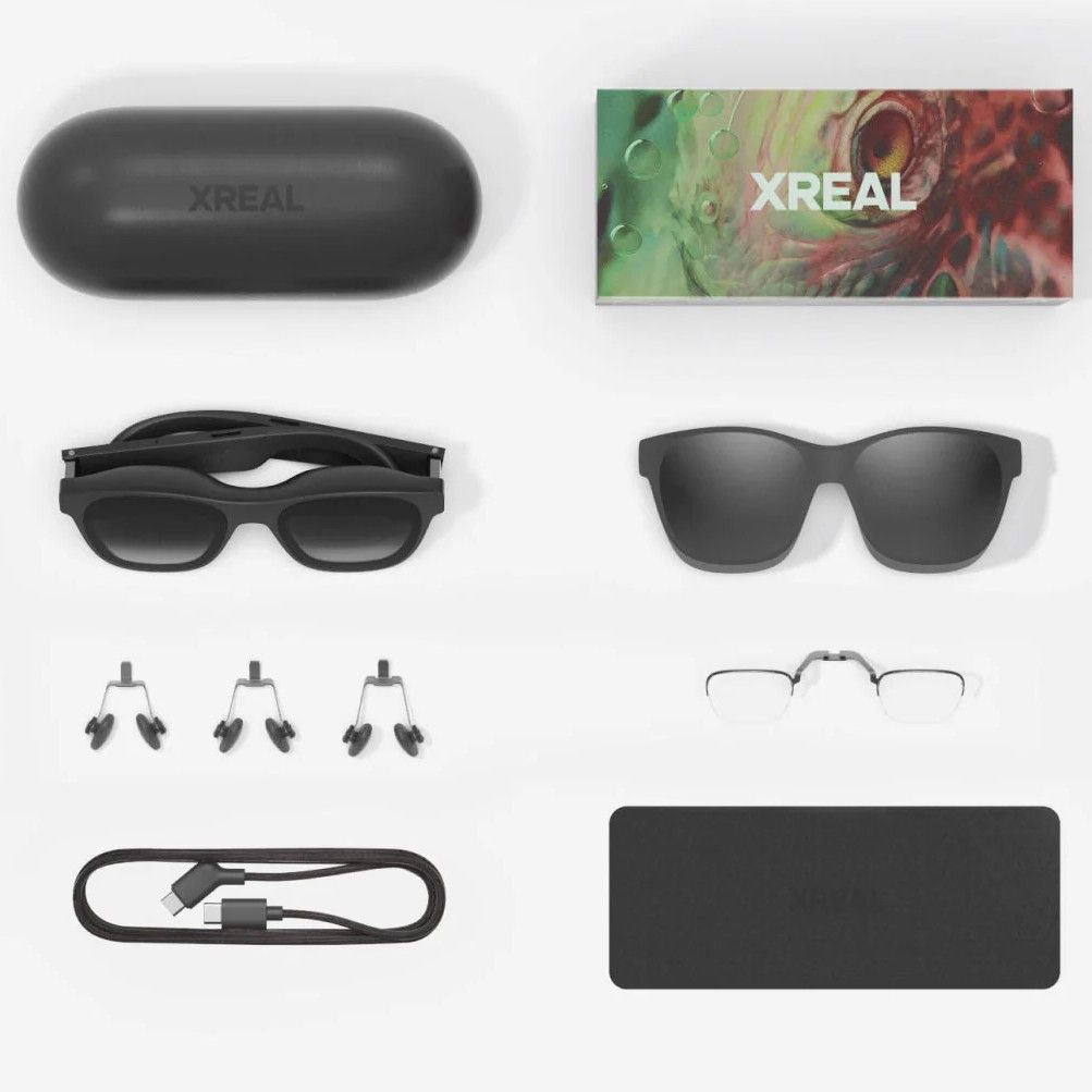 - Комплектация: Очки XREAL Air 2 Pro, Зарядный кабель USB-C, Салфетка для чистки, Жёсткий дорожный футляр, Светозащитный экран, Салфетка для чистки