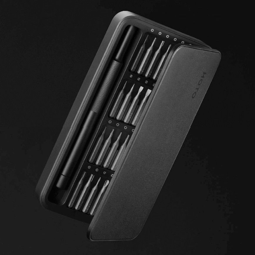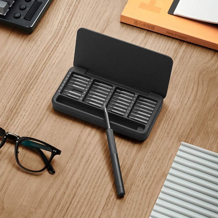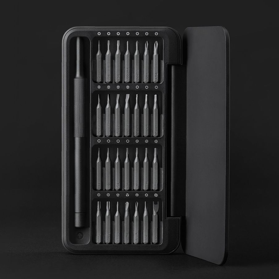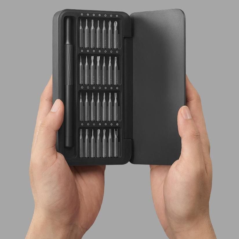 Набор из 28 прецизионных бит для точных работ и отвертку из алюминиевого сплава. Он является удобнейшим решением для ремонта мелкой техники, такой как очки, фотоаппарат, клавиатура, геймпад и т.д. Комплект поставляется в удобном и компактном кейсе с магнитной крышкой.