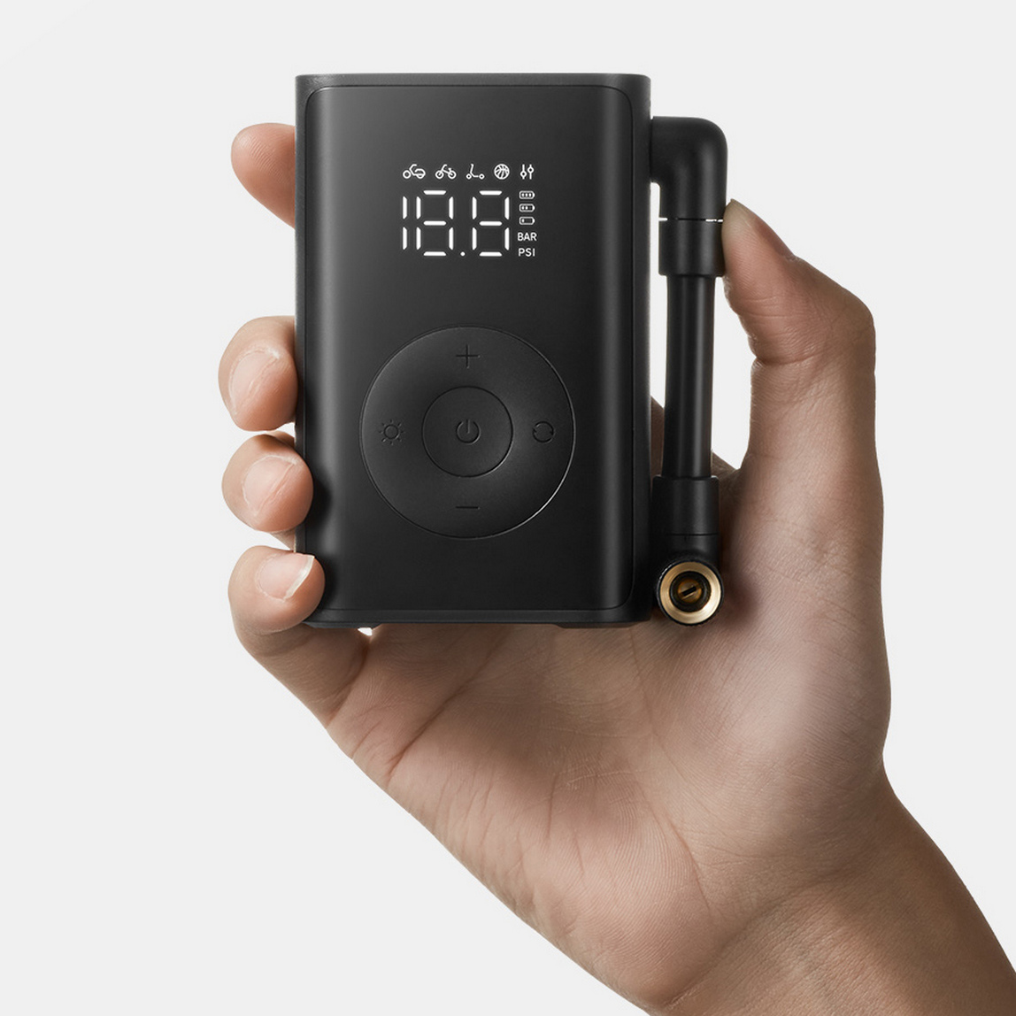Аккумулятор большой ёмкости 2000 мА·ч, полного заряда хватает на накачку 8 велосипедных шин.