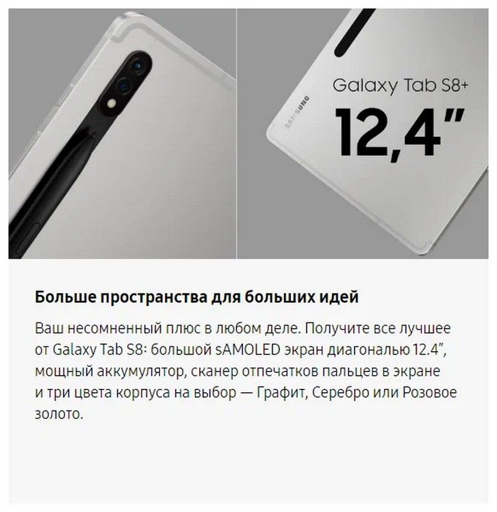 Компания Samsung обновила линейку планшетов Galaxy Tab S. В неё вошли 11-дюймовый Galaxy Tab S8, 12,4-дюймовый Galaxy Tab S8 Plus и абсолютно новый 14,6-дюймовый Galaxy Tab S8 Ultra.