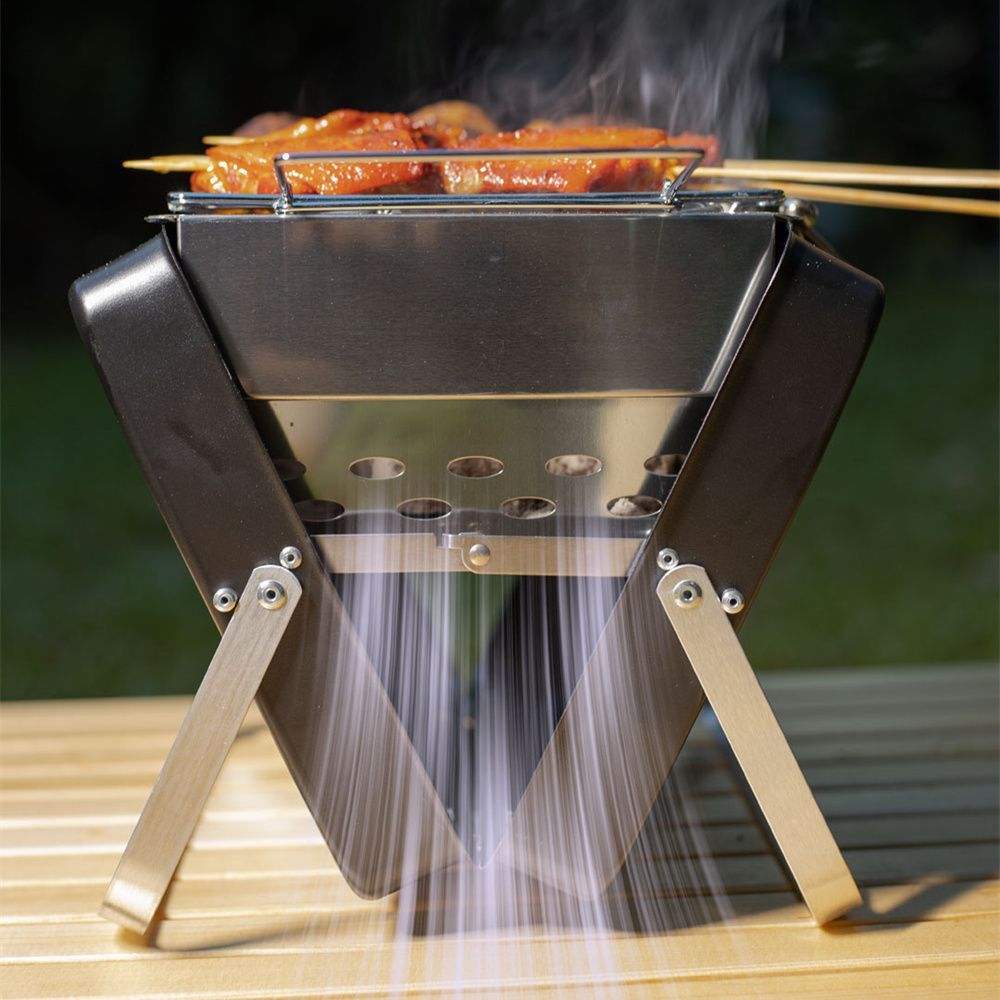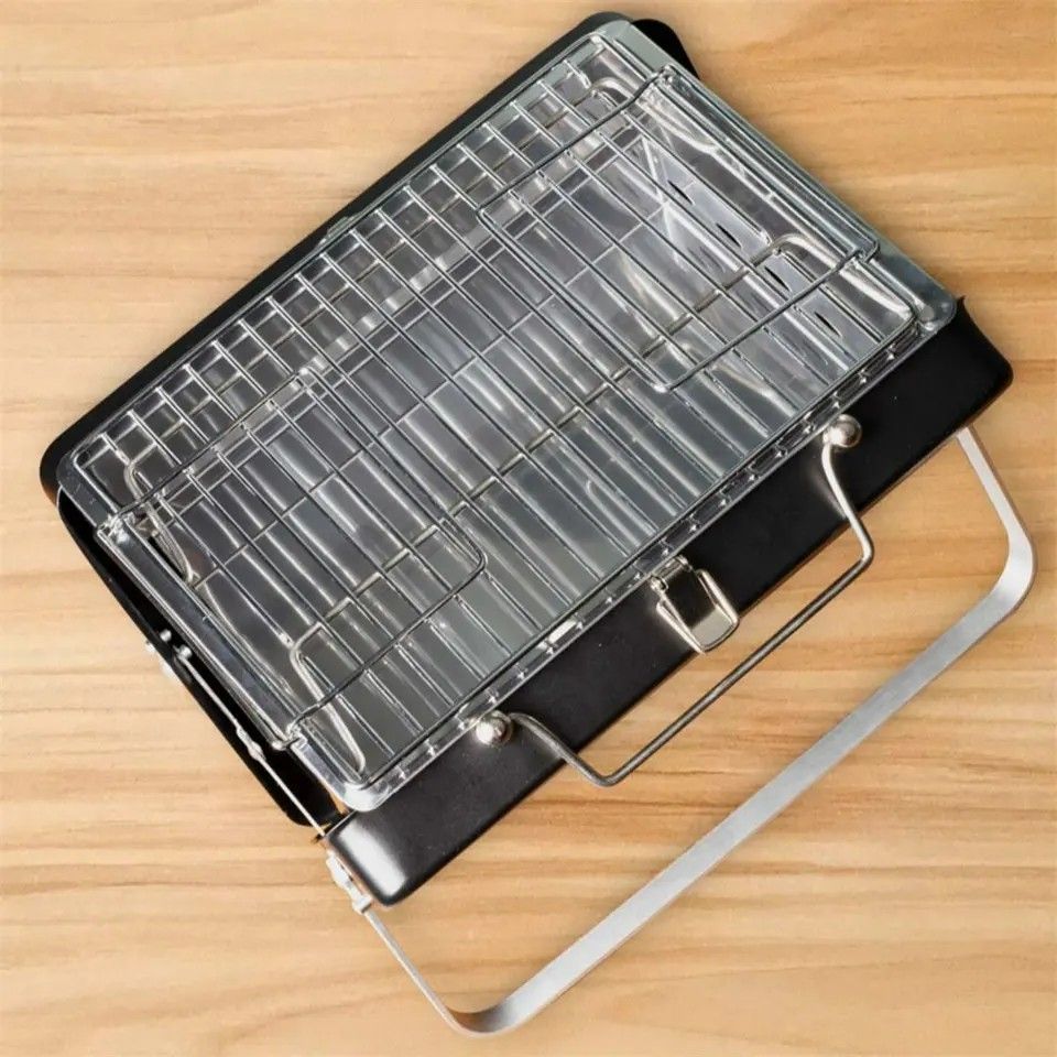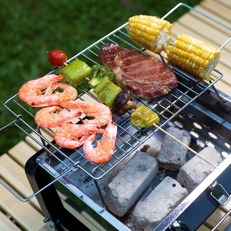 Портативный гриль отличается компактным дизайном в виде чемодана, который легко разбирается и складывается. Он создан из безопасных материалов и подходит для контакта с пищевыми продуктами.