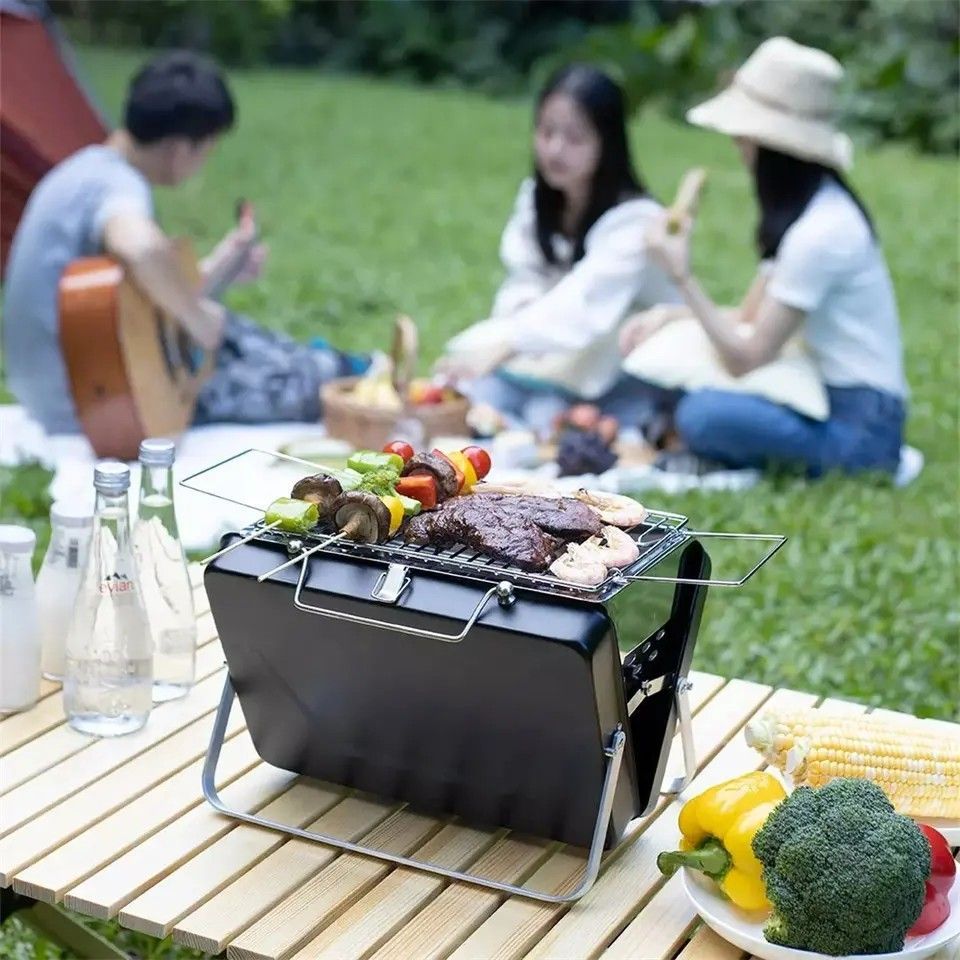 Гриль выполнен в виде складного чемодана, он лёгкий и удобный для переноски. Наслаждайтесь барбекю без длительной подготовки!