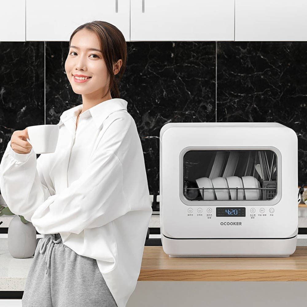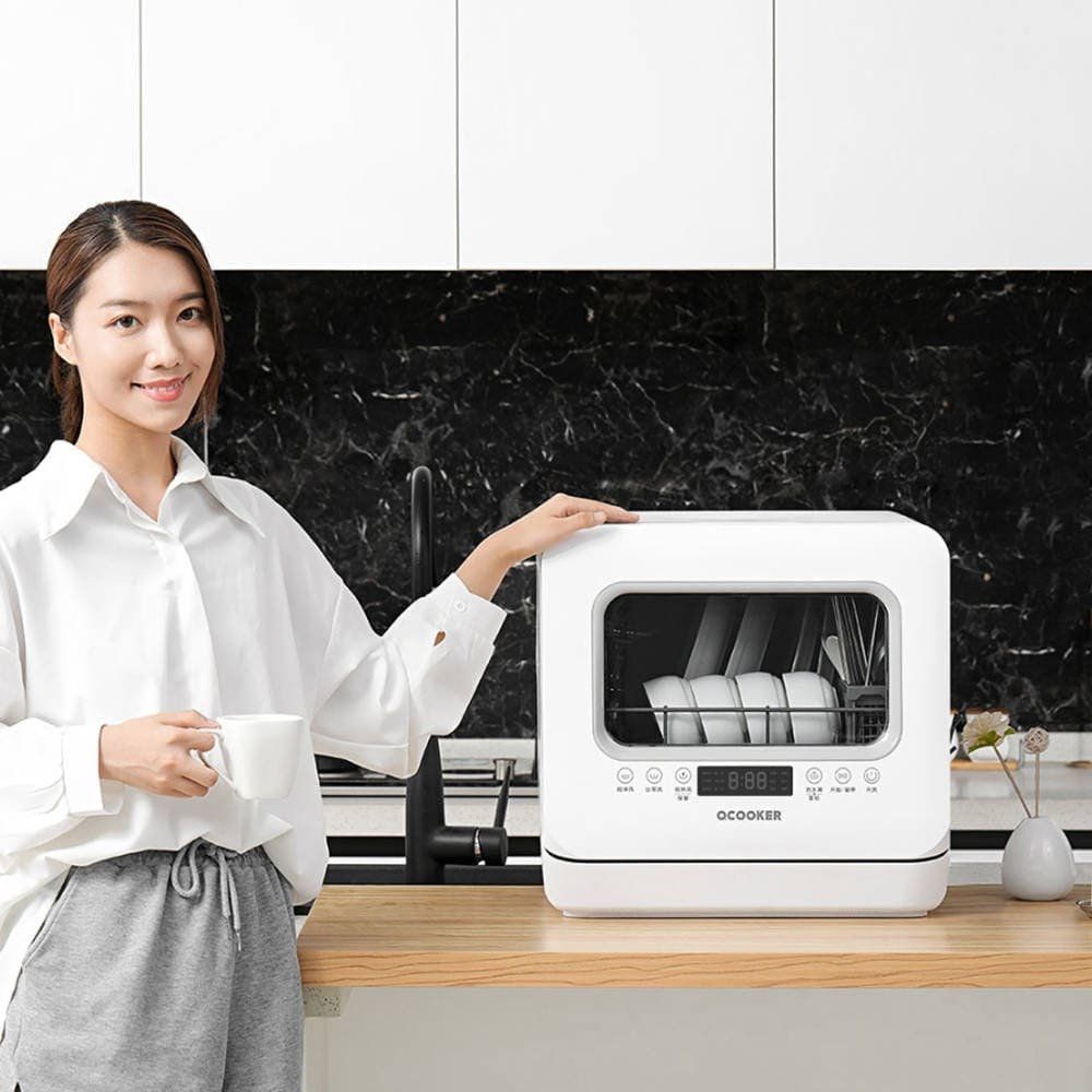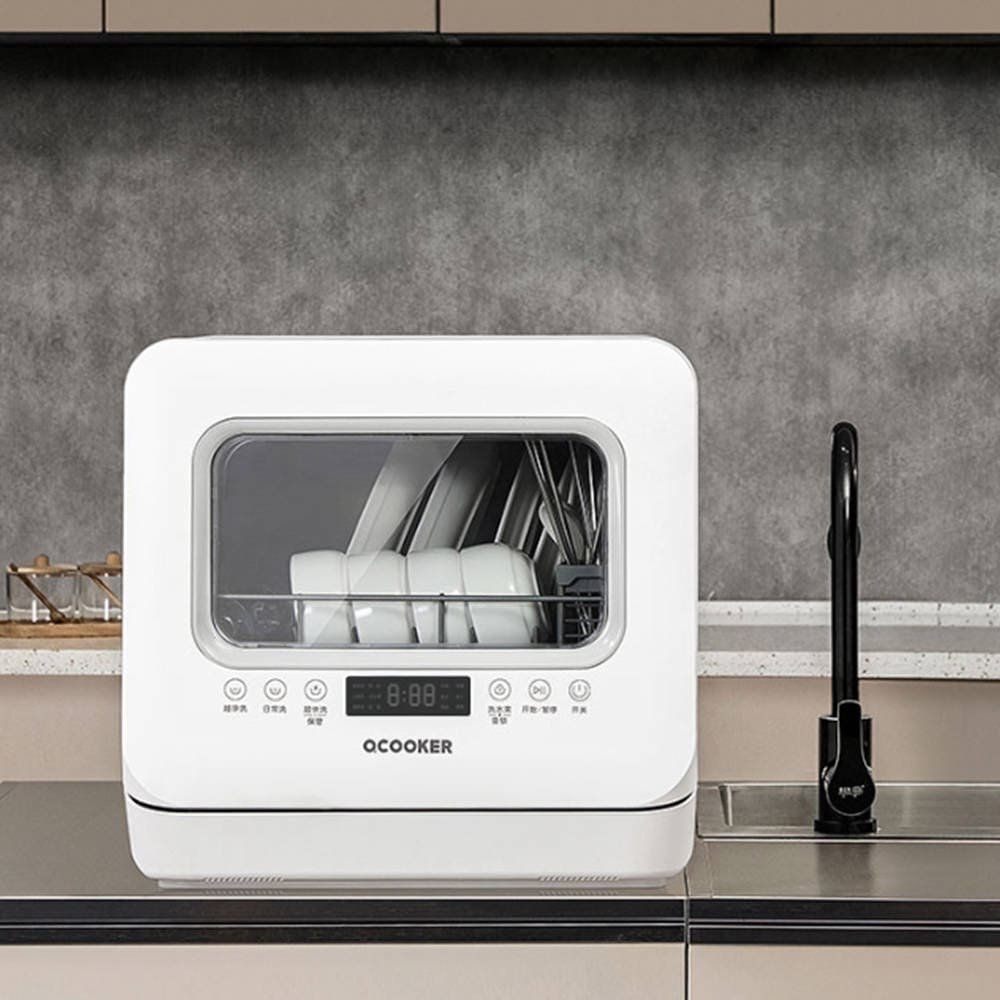 Xiaomi QCOOKER Tabletop Dishwasher – стильная посудомоечная машина с пятью режимами чистки, вращающимся распылителем и функцией «мягкой» воды.