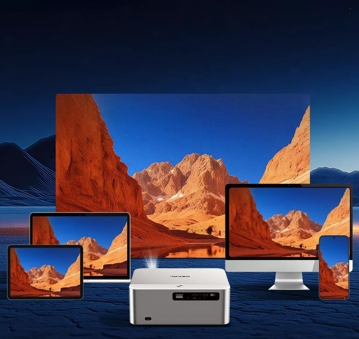 Благодаря сверхвысокой яркости 1400 люмен проектор OSCAL PV800 PRO обеспечивает чёткое и насыщенное изображение даже в хорошо освещённых помещениях. Наслаждайтесь стримингом днём или киновечерами ночью — детали остаются кристально чёткими, а просмотр — комфортным, без необходимости затемнять комнату.