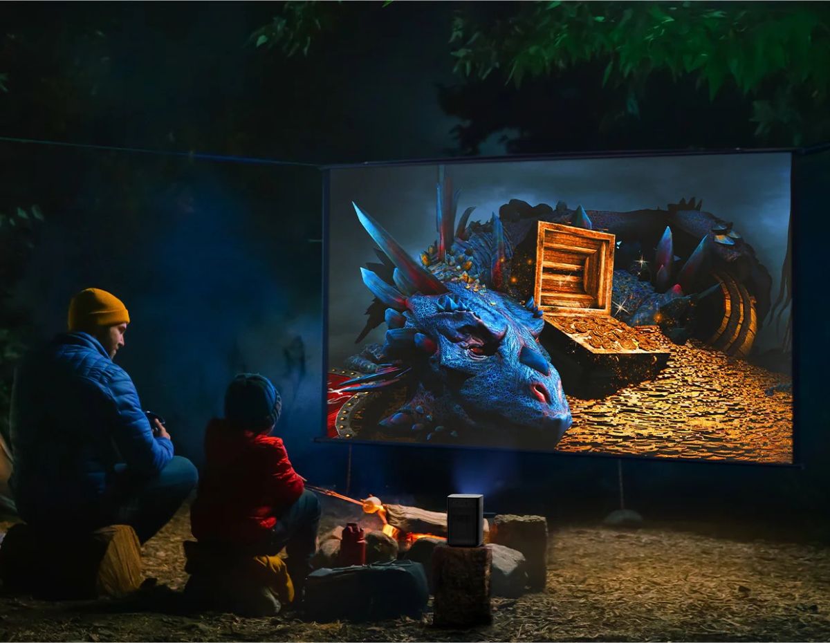 Благодаря коэффициенту отражения 1.2:1, с Halo+ у вас больше свободы в выборе места установки, будь то внутри дома или на заднем дворе. Возможность проекции изображения от 60 до 120 дюймов позволяет не заботиться о расположении проектора и сделать ваше следующее приключения на открытом воздухе еще более удивительным.
