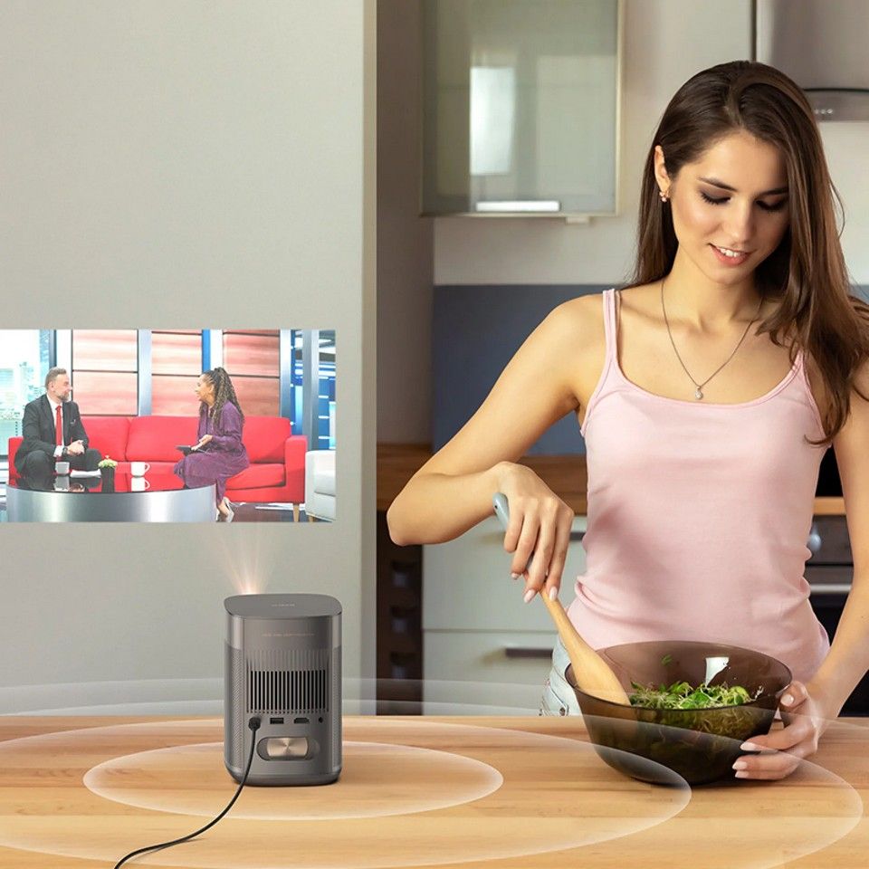 В MoGo 2 Pro достигнут беспрецедентный для портативных проекторов уровень качества звука. Наслаждайтесь двухсторонним, трехмерным звуком, воспроизводимым двумя динамиками мощностью 8 Вт и совместимым с Dolby Audio. Эмоции в каждой ноте: улучшенный звук для вашего спортивного азарта, киномарафонов и музыкальных вечеров.