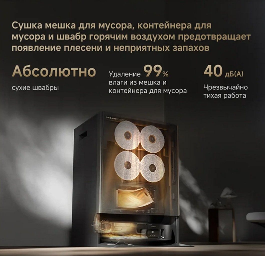 Робот-пылесос Matrix10 Ultra комплектуется системой высокотемпературной автоматической очистки, которая обеспечивает промывку швабр водой температурой 100 °C, и системой DashDry, которая обеспечивает сушку швабр, мешка и контейнера для мусора горячим воздухом. Благодаря этому станция остается идеально чистой без ручного обслуживания.