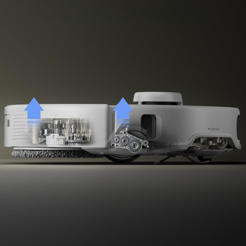 Roborock Qrevo Curv легко преодолевает высокие пороги, автоматически поднимая своё универсальное колесо. Он может преодолевать стандартные пороги высотой до 3 см и даже сложные двухслойные пороги высотой до 4 см, самые высокие в отрасли, обеспечивая непрерывное движение по различным поверхностям.