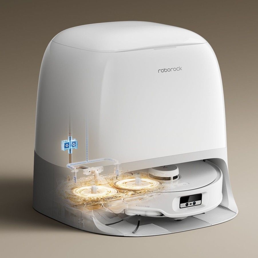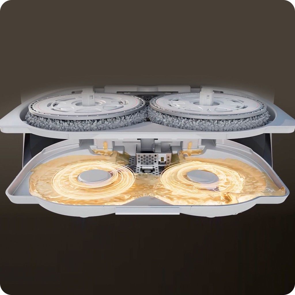 Встроенный модуль самоочистки с вращающимися скребками и горячей водой позволяет легко очищать основание док-станции, устраняя необходимость в ручном обслуживании.