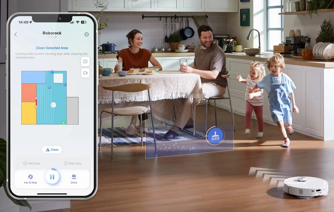Эксклюзивная система мытья полов FlexiArm Design Side Brush и Edge Mopping System от Roborock обеспечивает непревзойденную тщательность уборки, не оставляя грязи и устраняя слепые зоны.