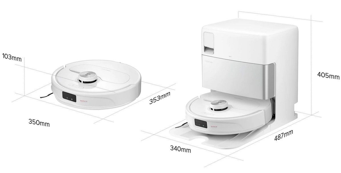 - Размеры: 350х353х102 мм (Робот), 340х487х521 мм (Док)