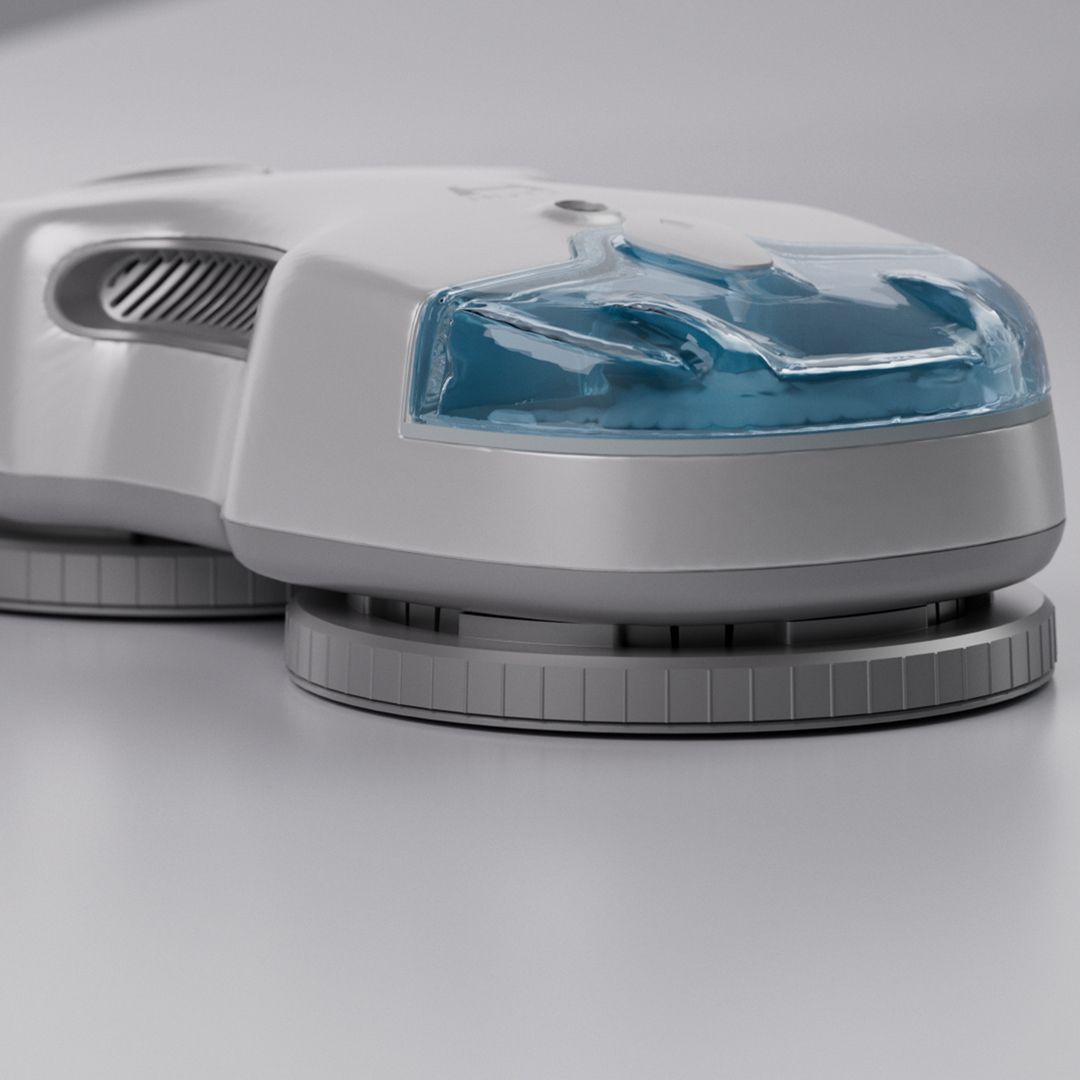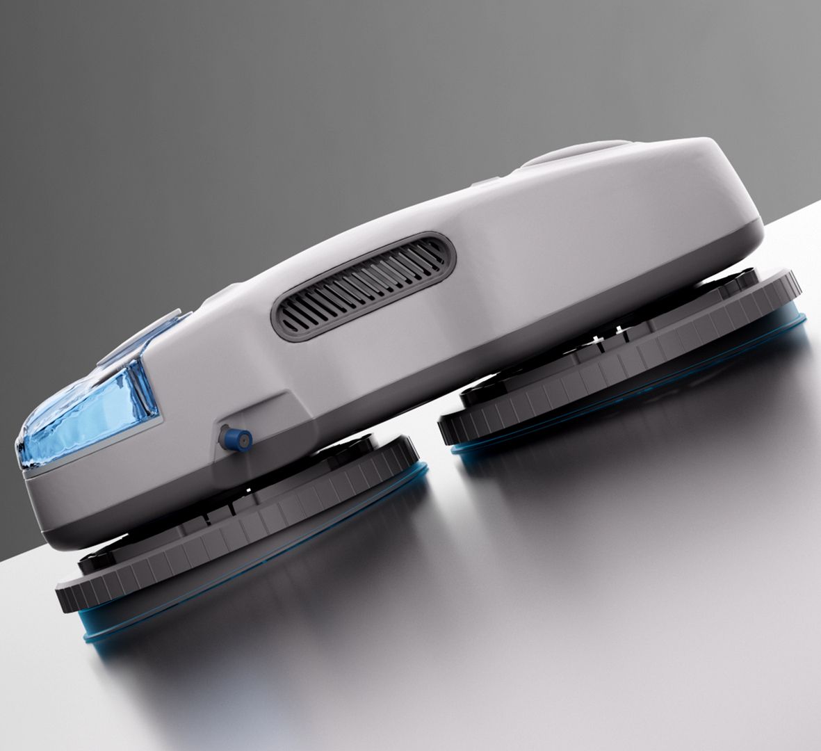 Преодолевает традиционную фиксированную структуру шасси. Благодаря динамичному и мощному прессованию подвесного шасси, обеспечивается плотное прилегание к оконной поверхности во время работы устройства, без потери мощности всасывания, и на окне не остаются водяные пятна или следы загрязнений после уборки.