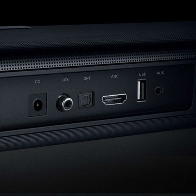 Имеется возможность подключения через HDMI ARC, USB, AUX, оптический кабель, коаксиальный кабель, а также Bluetooth 5.0.
