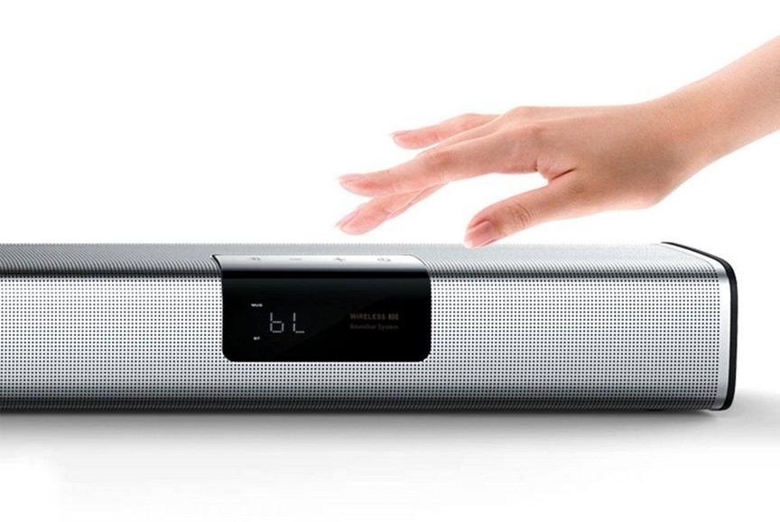 В верхней части саундбара расположен светодиодный экран с сенсорной панелью, которая позволяет быстро переключиться между входами и настроить громкость.