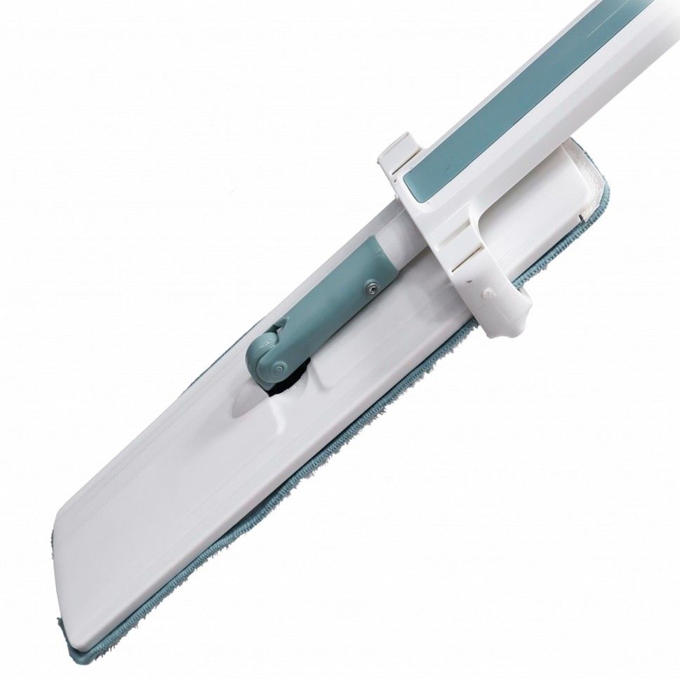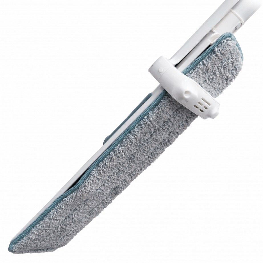 Швабра изготовлена из прочного пластика, а удлинительная штанга – из нержавеющего металла. Наклонно-поворотный механизм позволяет изменять угол наклона основания. Фиксация салфетки осуществляется с помощью системы многоразовых липучек.