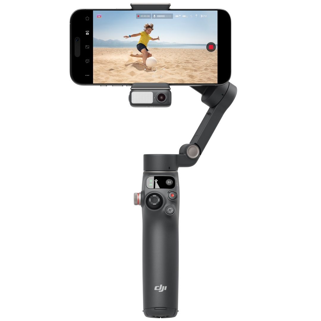 Osmo Mobile 7P объединяет мощные характеристики в компактном корпусе. В сочетании с многофункциональным модулем он предоставляет возможности освещения и приёма аудио. Кроме того, в нём есть встроенный телескопический удлинитель и штатив. Этот интуитивно понятный дизайн предоставляет всестороннюю поддержку для ваших творческих проектов.