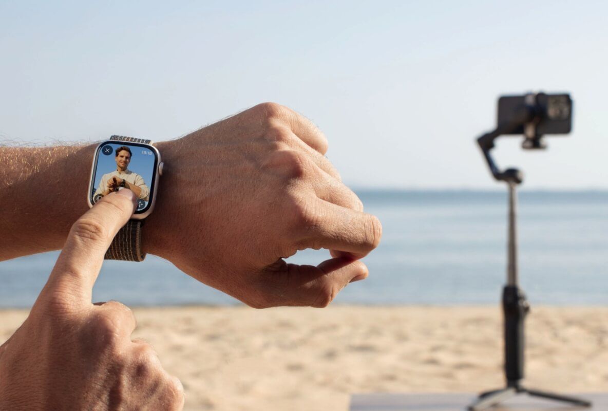 Установите приложение DJI Mimo на свои Apple Watch, чтобы превратить часы в умный пульт дистанционного управления для стабилизатора. Просматривайте камеры с экрана ваших часов, регулируйте угол стабилизатора, переключайтесь между портретным и ландшафтным режимами, а также делайте фотографии или записывайте видео. Это устраняет ограничения съёмки вблизи, предоставляя больше свободы в кадрировании и композиции.