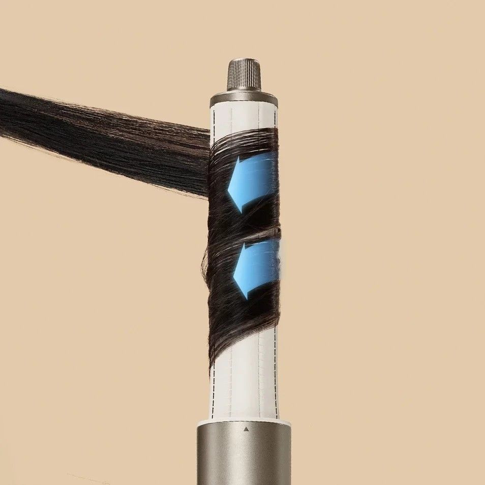 Насадка для завивки направляет воздух изнутри наружу, оставляя зазор для бережной укладки волос. Благодаря удобным настройкам и автоматическому наматыванию она позволяет без труда создать упругие локоны.