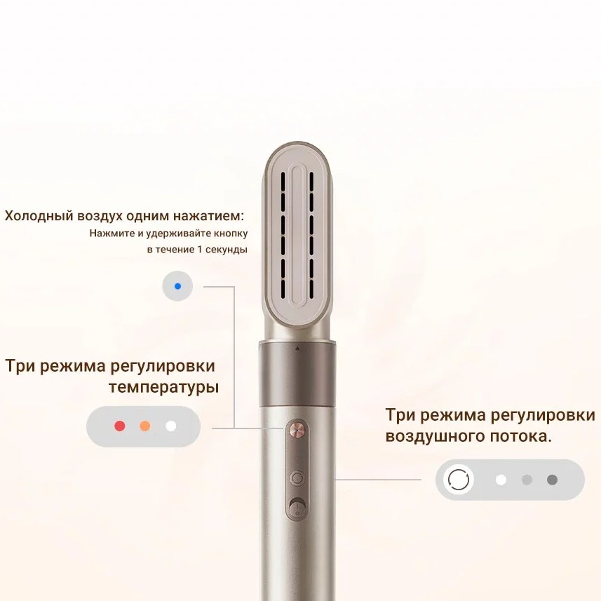 Стайлер Dreame AirStyle позволяет регулировать скорость потока воздуха, обеспечивая идеальный результат при укладке волос в любых условиях.