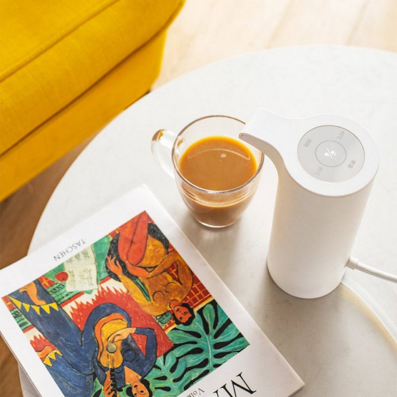 Диспенсер-термопот поддерживает многотемпературный режим, нагревает воду за 3 секунды, имеет простое управление и подходит для бутилированной воды. По сравнению с электрическим чайником диспенсер имеет ряд преимуществ - моментальный нагрев, 4 ступени регулировки температуры, однократный нагрев воды без повторного кипячения. Мощный двигатель обеспечивает отклик за 0,2 сек и интенсивный напор воды выход - 400 мл/мин.