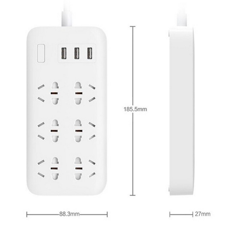 Удлинитель Mi Power Strip получил целых 6 гнезд для подключения устройств с разными вилками (UK, US, AU, EU), а также 3 USB порта. Забудьте о переходниках и зарядных устройствах, торчащих из розетки!