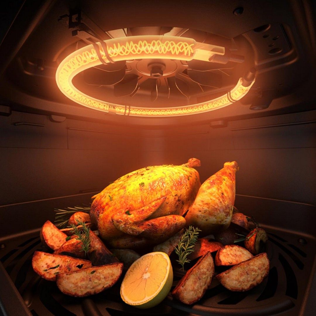 Высокая мощность 1800 Вт обеспечивает быстрый нагрев, а технология дальнего инфракрасного подогрева мгновенно распределяет тепло по всей камере. Ингредиенты прогреваются равномерно, делая процесс приготовления еще более эффективным.