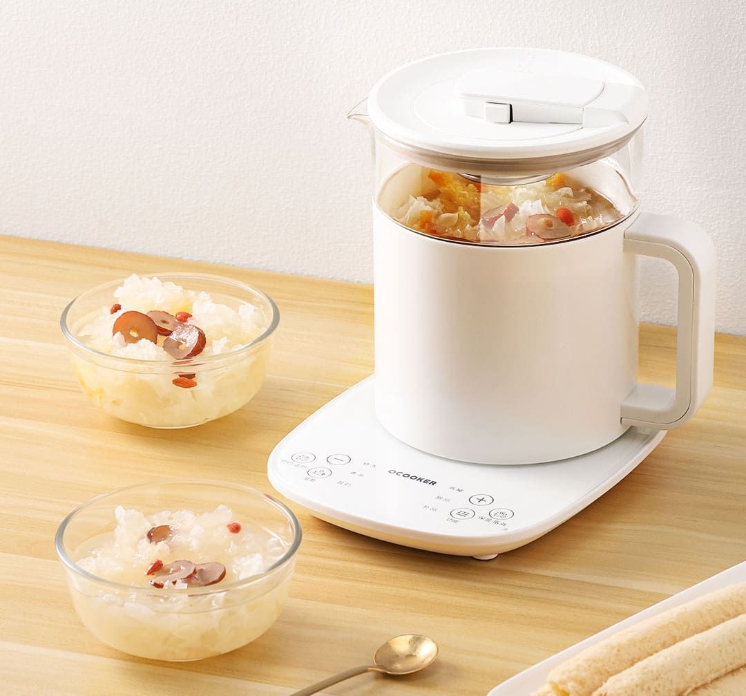 Xiaomi Qcooker Multi-Functional Hot Pot (CS-YS01) - умный чайник, несколько настроек меню которого, помогут всего одной кнопкой добиться желаемого вкуса и поделиться ими с близкими в любое время года. Данная модель весьма условно называется "чайником", потому что он также умеет варить, тушить, готовить на пару, а также может применяться в других кулинарных изысканиях, облегчая вам работу. Всего за десять минут можно довести полный чайник до кипения, чтобы приготовить с его помощью что-то новенькое вопреки временным рамкам. Все ингредиенты можно собрать заранее, а к нужному времени чайник сам все приготовит, не заставляя себя долго ждать. Плавный цилиндрический корпус в белом цвете выполнен с расчетом не только на привлекательную внешность, но и на высокую безопасность. В нем исключен прямой контакт рук с горячим корпусом. Колба чайника выполнена из отборного закалённого стекла, которое прекрасно выдерживает тепловые нагрузки, не давая трещин.
