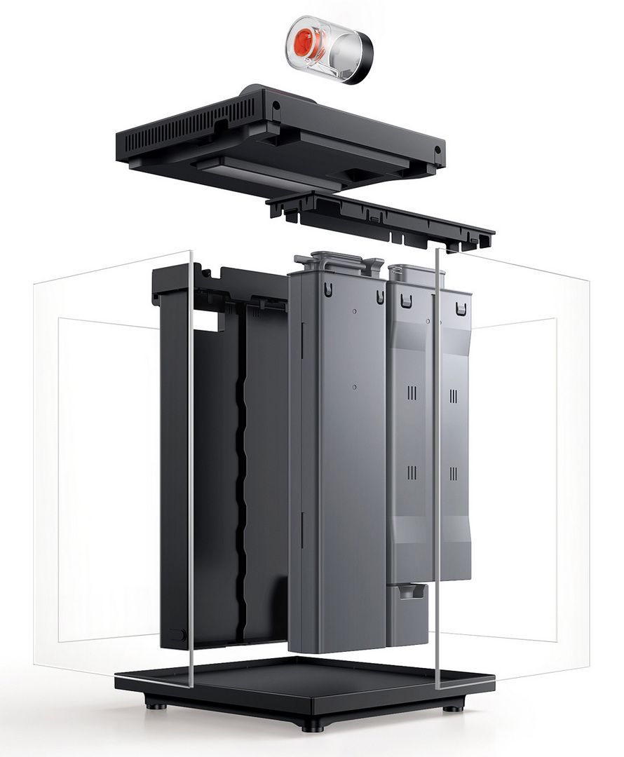 Вертикальный дизайн увеличивает высоту аквариума до 324 мм, при этом он занимает меньше места, чем лист формата A4. Легко размещается даже на небольшом столе.