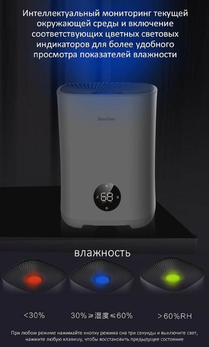 Почти бесшумный в ночном режиме, Beautitec Evaporative Humidifier SZK-A300 продолжит заботиться о Вас даже во сне.