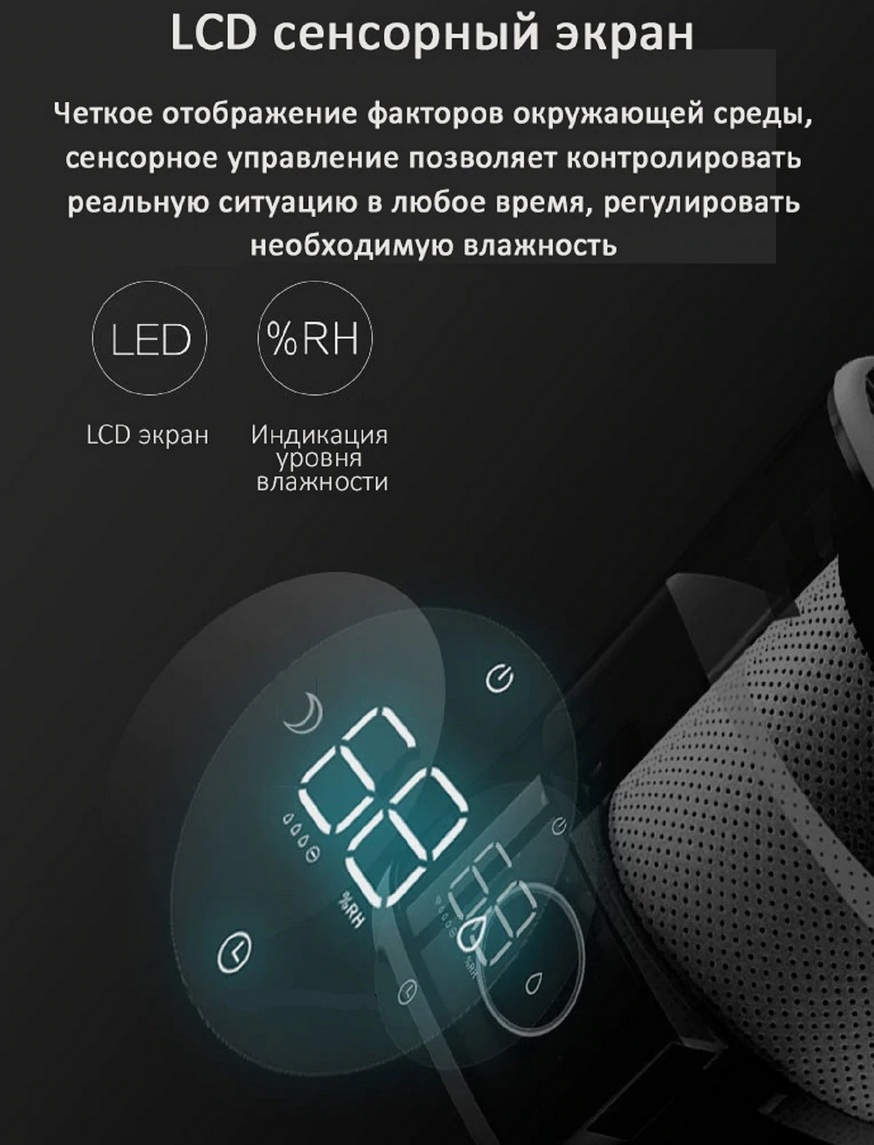 На лицевой части увлажнителя расположен информативный сенсорный экран, с помощью которого вы можете: