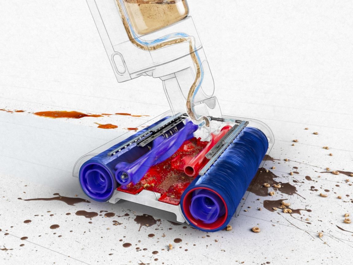 Моторизованные валики Dyson разработаны таким образом, чтобы дважды захватывать пятна за каждый проход для их быстрого удаления.