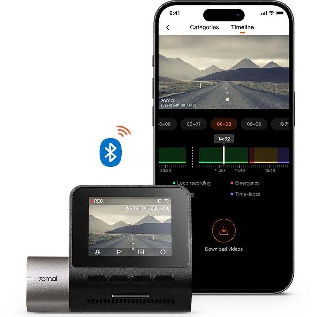Вы можете легко подключить видеорегистратор к приложению 70mai по Bluetooth. Изменяйте настройки камеры и снимайте важные моменты одним касанием.