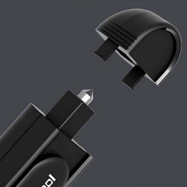 Этот аксессуар для автомобиля незаменим во множестве различных ситуаций. На одной стороне автовизитки имеется стропорез для разрезания ремня безопасности, а на другой стороне - стеклобой. Современный и удобный аксессуар впишется в любой интерьер салона автомобиля.