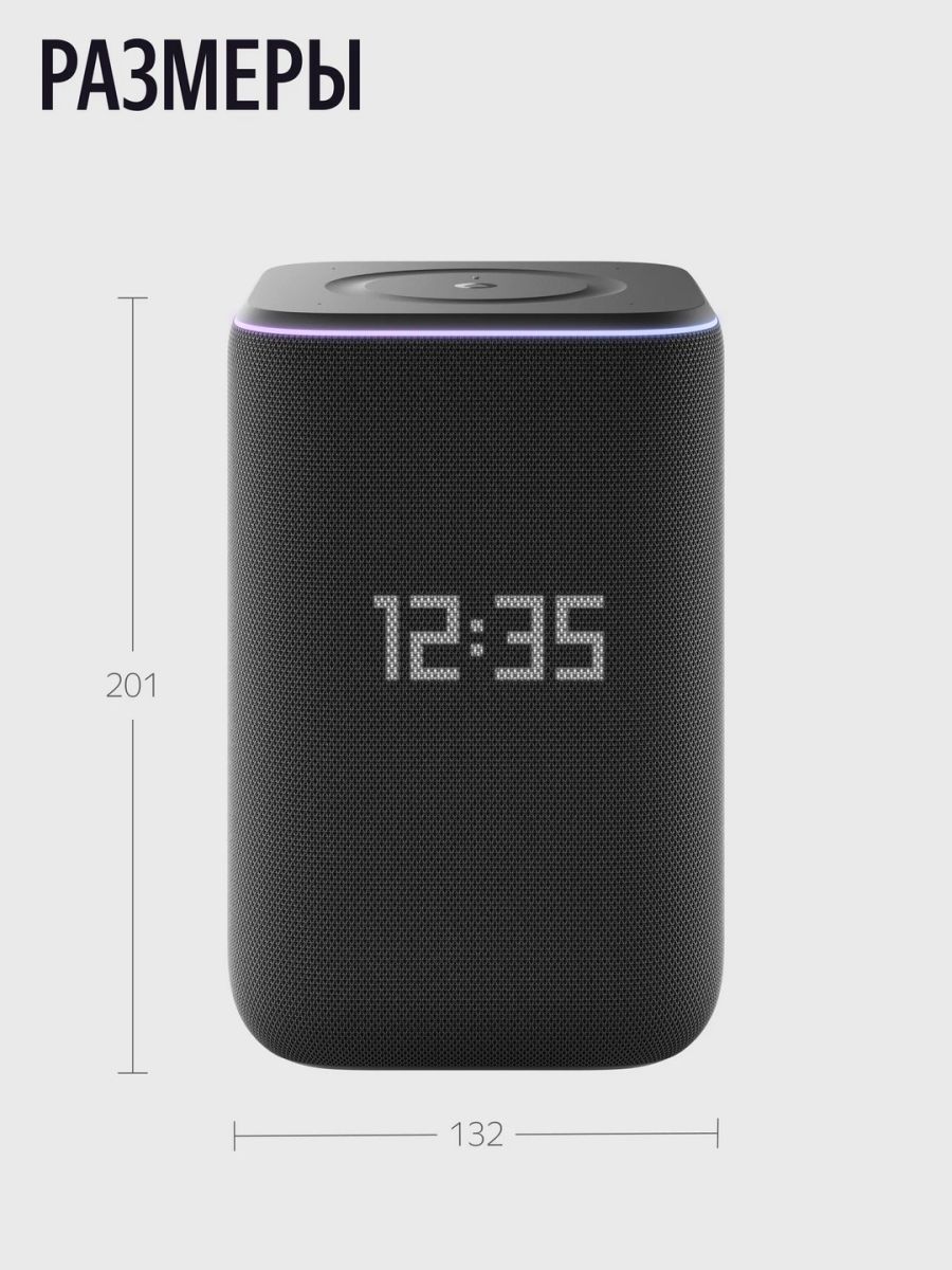 На фронтальной стороне умной колонки находится пиксельный LED-дисплей, который показывает время, погоду и эмоциональные реакции Алисы.
